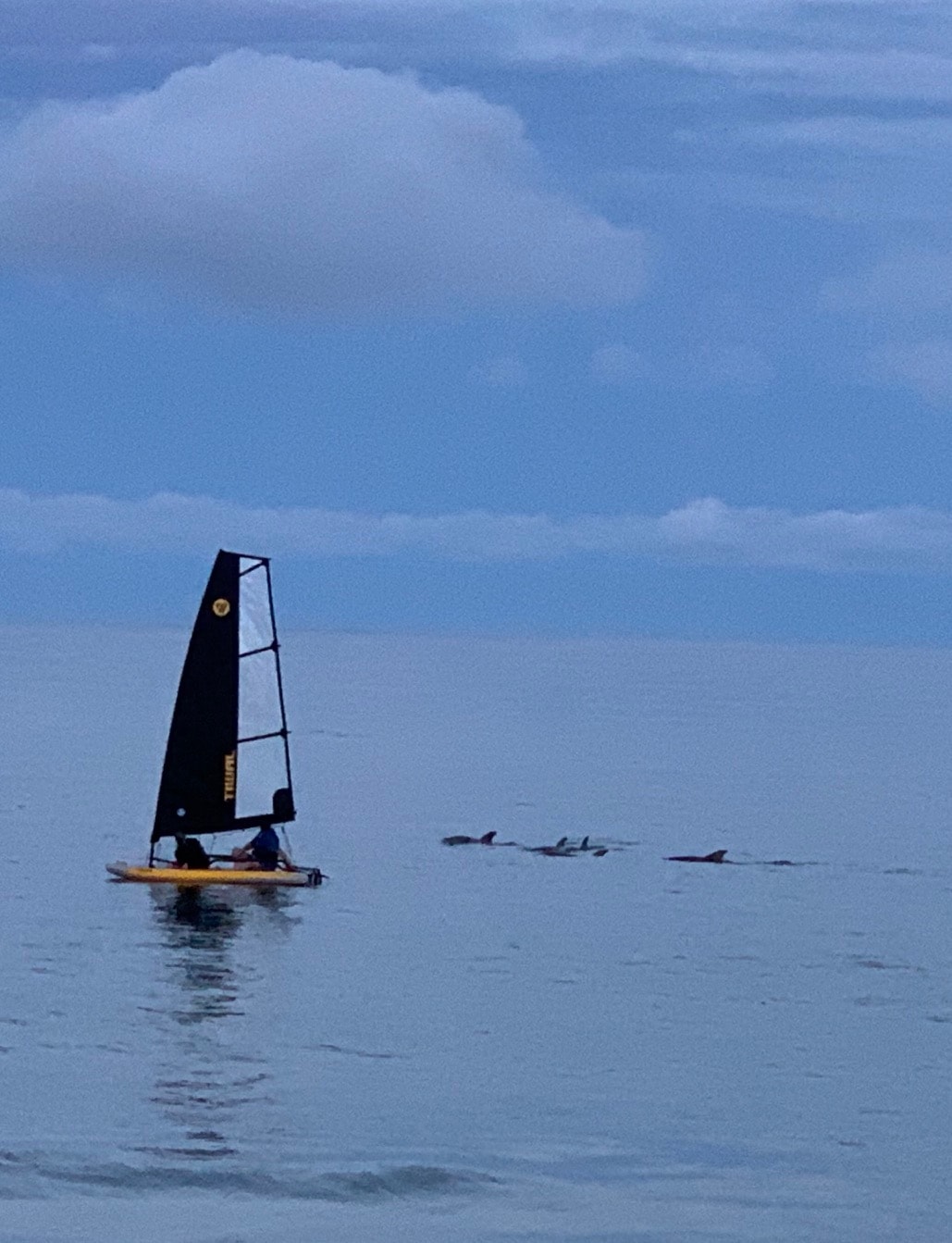 So far my best memory is when I did take a friend out. A group of five dolphins popped up right near the boat maybe 15 to 20 feet away. It was a calm day, we were moving fairly slow because there was not a ton of wind but the dolphins were also moving very slow and it was really outstanding.